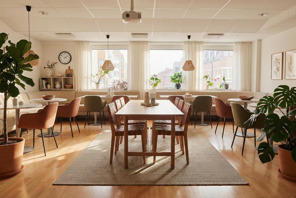 En härlig terrass finns i anslutning till lokalen där ni kan ta en paus och njuta ev en kopp kaffe.