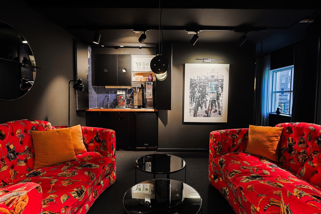 Lokalen har en unik vibe, lika mycket showroom som arbetsplats. En miljö som driver kreativitet, produktivitet och stolthet. Snygg lounge och social yta perfekt för event, mingel och kundmöten.