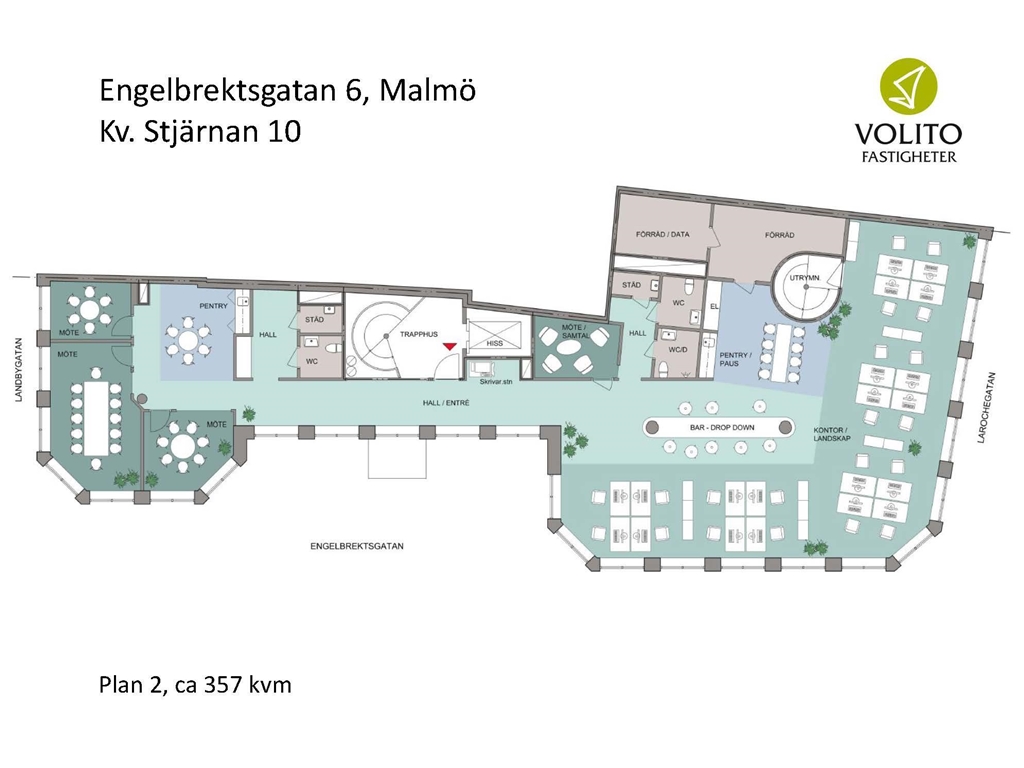 - Öppet landskap med plats för upp till 20 arbetsplatser
