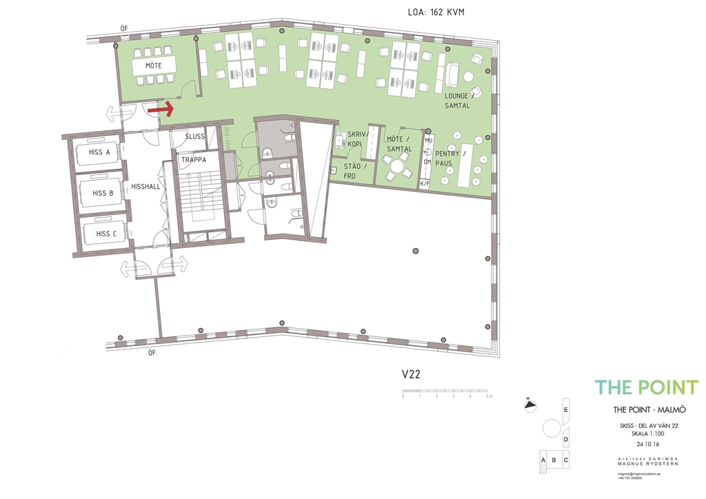 På våning 22 i The Point erbjuder vi nu en fantastisk kontorslokal på 162 kvm med en imponerande utsikt över Skånes vackra landskap. Lokalen har ett stort öppet kontorslandskap som rymmer upp till 12 personer. Här finns också två mötesrum i olika storlekar. Dessutom har kontoret plats för en härlig loungedel där du och dina medarbetare kan koppla av eller mingla med kunder. Stora fönster släpper in rikligt med naturligt ljus, vilket skapar en inspirerande atmosfär att arbeta i.