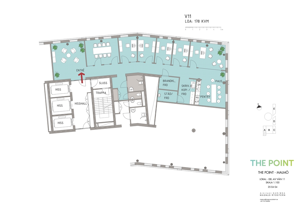 På våning 11 i The Point erbjuder vi nu en fantastisk kontorslokal på 178 kvm, perfekt för det mindre teamet som vill kombinera eget utrymme med samhörighet och smarta lösningar.