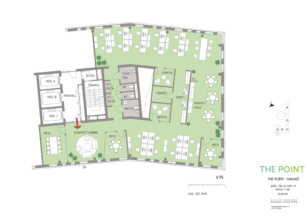 Högt upp på våning 19 i The Point hittar ni denna ljusa och rymliga kontorslokal om 325 m², med en utsikt över Öresundsbron som garanterat imponerar på både medarbetare och besökare. Här kombineras generösa ytor med smart planering för att skapa en arbetsmiljö där både fokus och samarbete får ta plats. Lokalen erbjuder tre välutrustade mötesrum och två mindre samtalsrum för avskilda diskussioner. I det öppna kontorslandskapet finns plats för upp till 20 personer, perfekt för er som vill arbeta nära varandra men ändå ha gott om svängrum. Vid entrén kan ni skapa en inbjudande reception eller lounge, en naturlig samlingspunkt för både kunder och kollegor. Självklart är lokalen utrustad med moderna bekvämligheter som toaletter och RWC med dusch, för en både praktisk och trivsam arbetsplats.