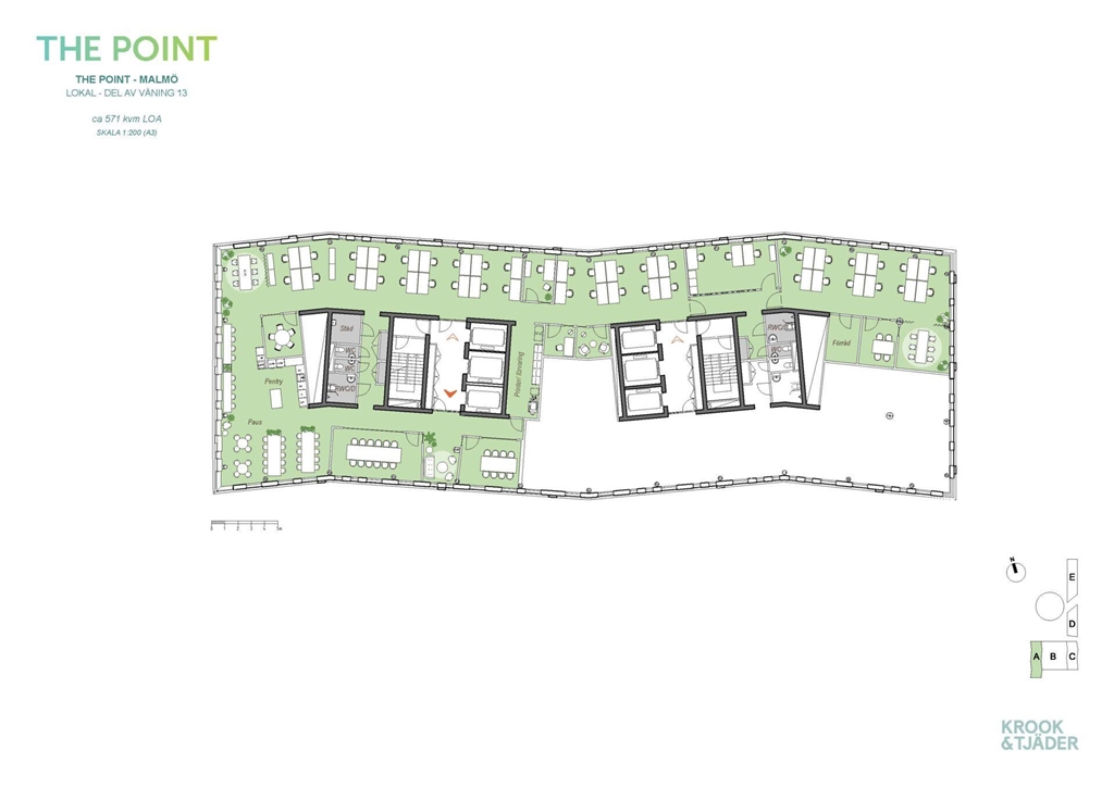 På våning 13 i The Point väntar en rymlig och ljus kontorslokal på 571 m², med utsikt över Öresundsbron som verkligen ger wow-känsla. Lokalen är flexibel och välplanerad, med ett öppet kontorslandskap som rymmer upp till ca.40 personer, enskilda kontorsrum, samtalsrum och 3– 4st konferensrum, perfekt för både kreativa möten och fokuserat arbete. Här finns även möjligheter att skapa en inbjudande reception eller lounge vid entrén, där både kollegor och kunder kan mötas. Självklart är lokalen utrustad med moderna bekvämligheter som toaletter och RWC med dusch, för en både praktisk och trivsam arbetsplats.