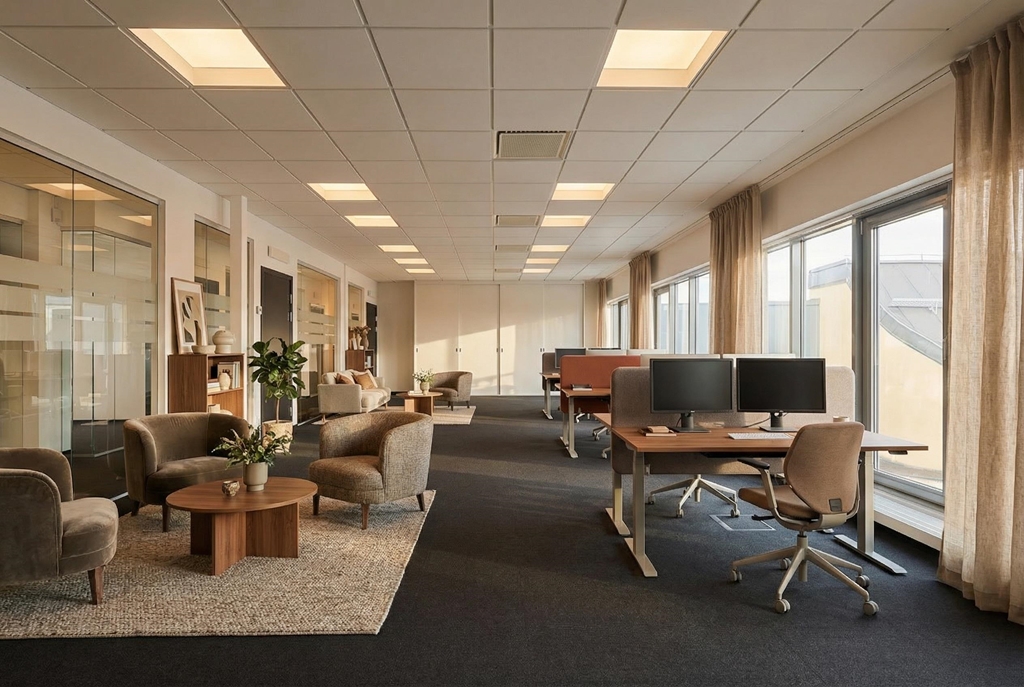 Lokalen erbjuder ett stort kontorslandskap med plats för upp till 12 arbetsplatser och 3 separata kontorsrum. Här finns också ett rymligt konferensrum för upp till 16 personer, mötesrum för upp till 8 personer, perfekt för möten och presentationer, samt teamsrum.