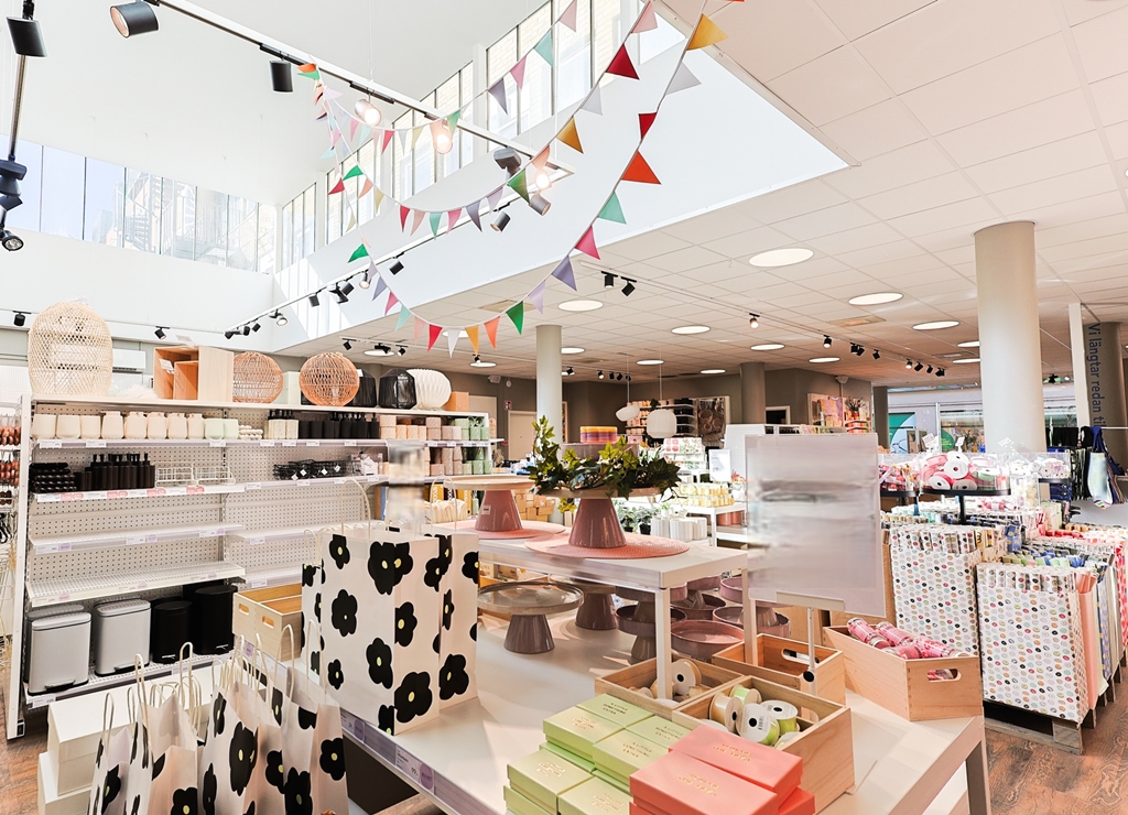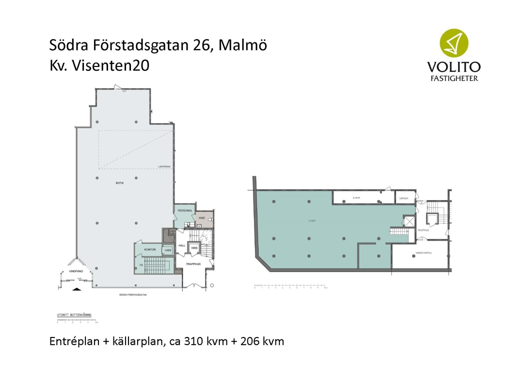 Utöver butiksytan så finns även ett kontorsrum, pentry, toalett samt en egen hiss och trappa ner till lagerutrymmet om 206 m².