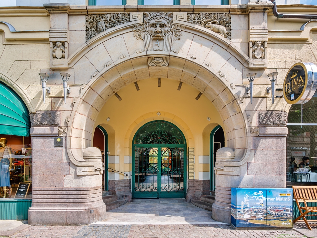 Nästan mitt på Malmös centrala gågata, några få steg från kanalen, ligger en av stadens vackraste byggnader, och tillika den första fastigheten Volito förvärvade. Byggnaden är ett praktverk i tidstypisk jugendstil med en ornamenterad fasad och en mängd välbevarade originaldetaljer, såväl exteriört som interiört. Fastigheten erbjuder ljusa och modernt utrustade kontor i varierande storlek och utformning, i en miljö som präglas av eleganta trapphus, stora ljusinsläpp, högt i tak, dekorativa stuckaturer, pampiga kakelugnar, takbjälkar, utsikt över cityliv och takåsar och inte minst en solig terrass på översta våningen.