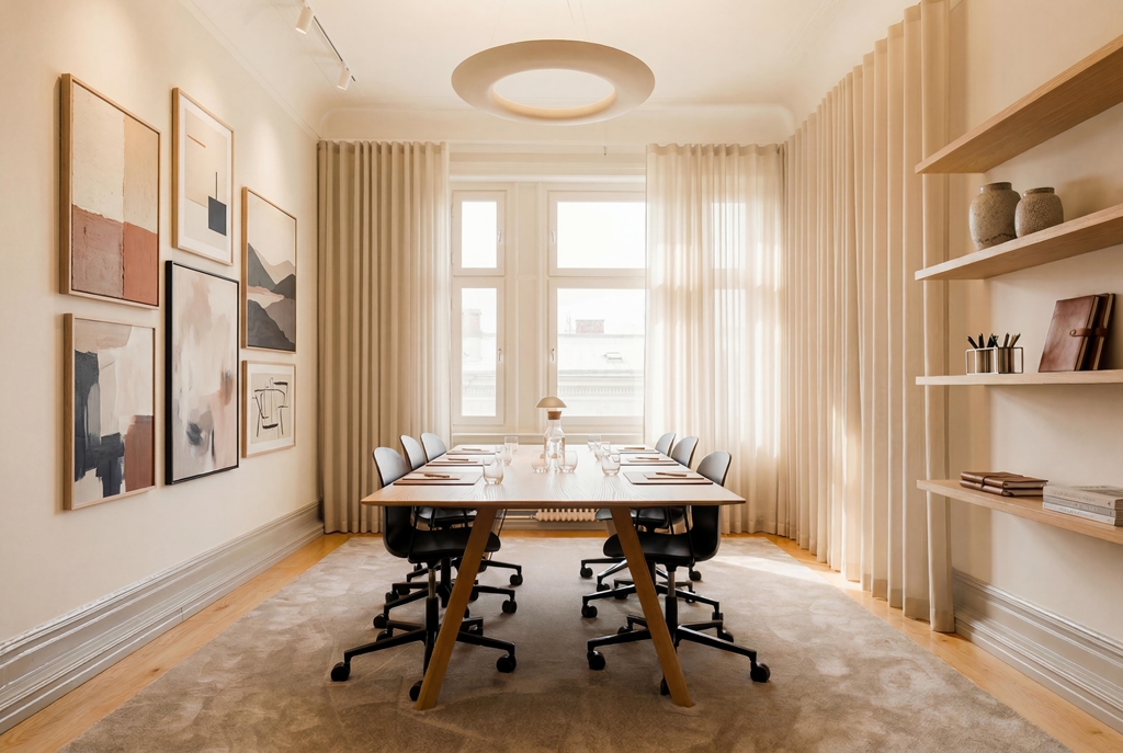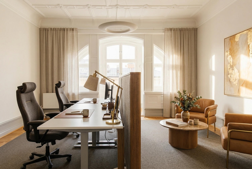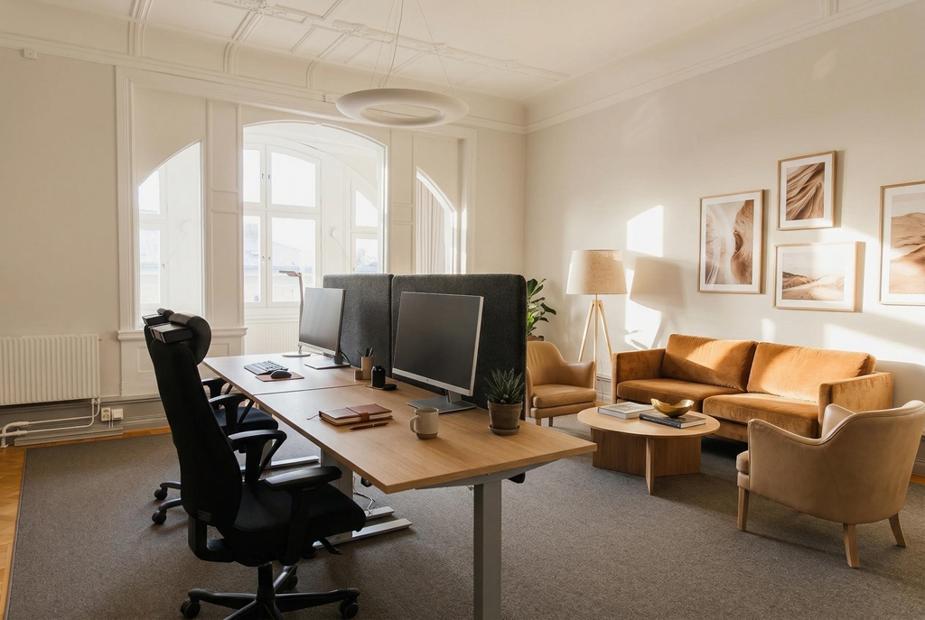 Önskar du en arbetsplats där ni kan njuta av både inomhus- och utomhusmiljöer? Med två balkonger och en lummig innergård är det enkelt att ta en paus i friska luften eller bjuda in till avslappnade möten.